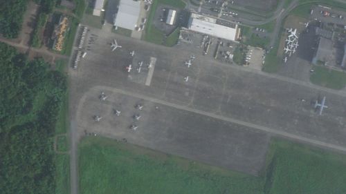 A satellite image captured on October 17 shows F-35 fighter jets at José Aponte de la Torre Airport in Puerto Rico. (Planet Labs PBC via CNN)
